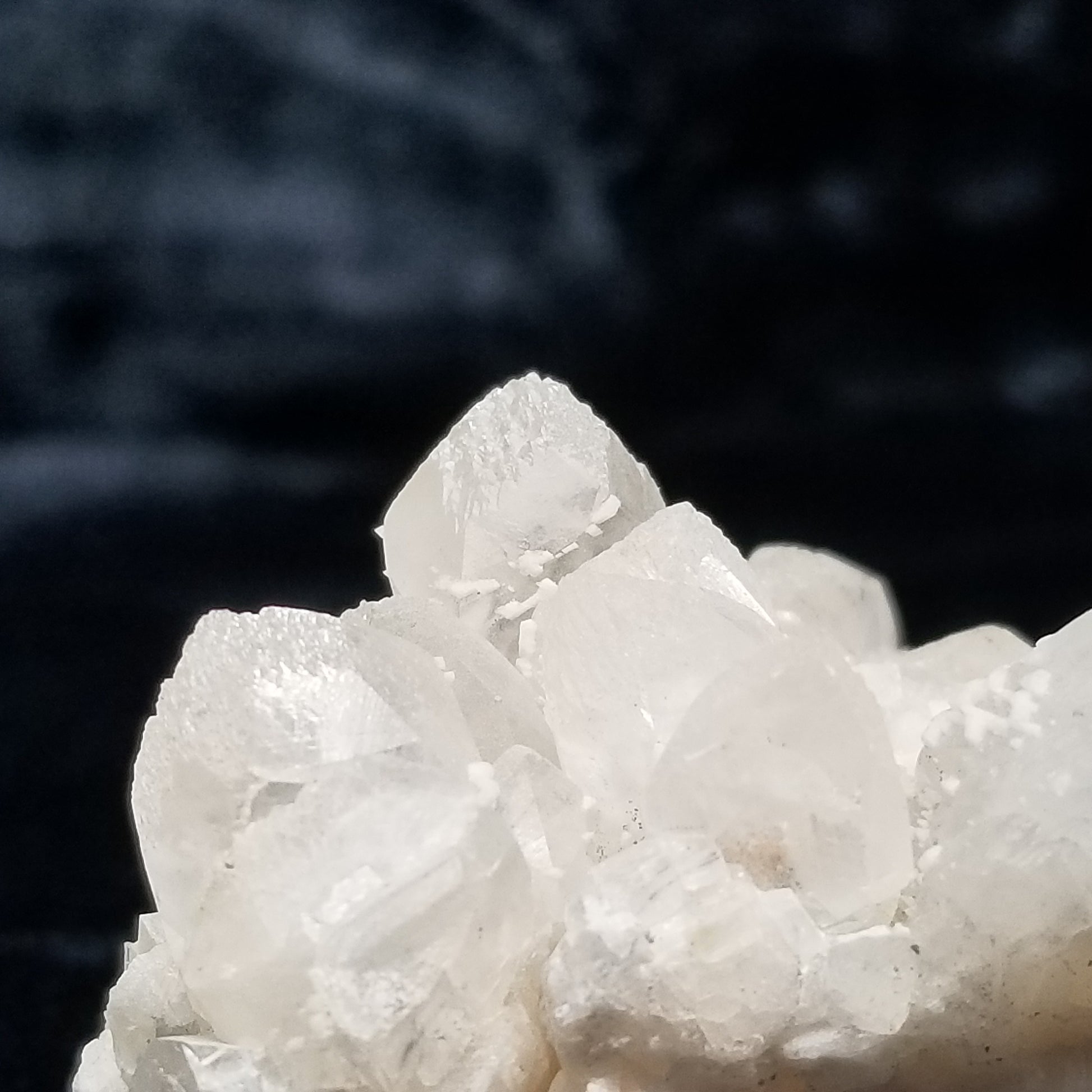 Dogtooth Spar Calcite, also known as Nailhead Spar Calcite, is a captivating mineral famed for its pointed crystal formations resembling canine teeth. These unique specimens, often found in clusters, exhibit remarkable transparency and clarity, allowing light to pass through and illuminate their crystalline structure. Found alongside minerals like quartz and fluorite, Dogtooth Spar Calcite showcases a diverse range of colors and formations, making each piece a unique work of art. Beyond its aesthetic appeal, Dogtooth Spar Calcite is believed to possess energizing and cleansing properties, making it prized in both metaphysical and scientific circles. Its timeless elegance and enigmatic charm continue to inspire curiosity and wonder, inviting us to explore the mysteries of the natural world.
