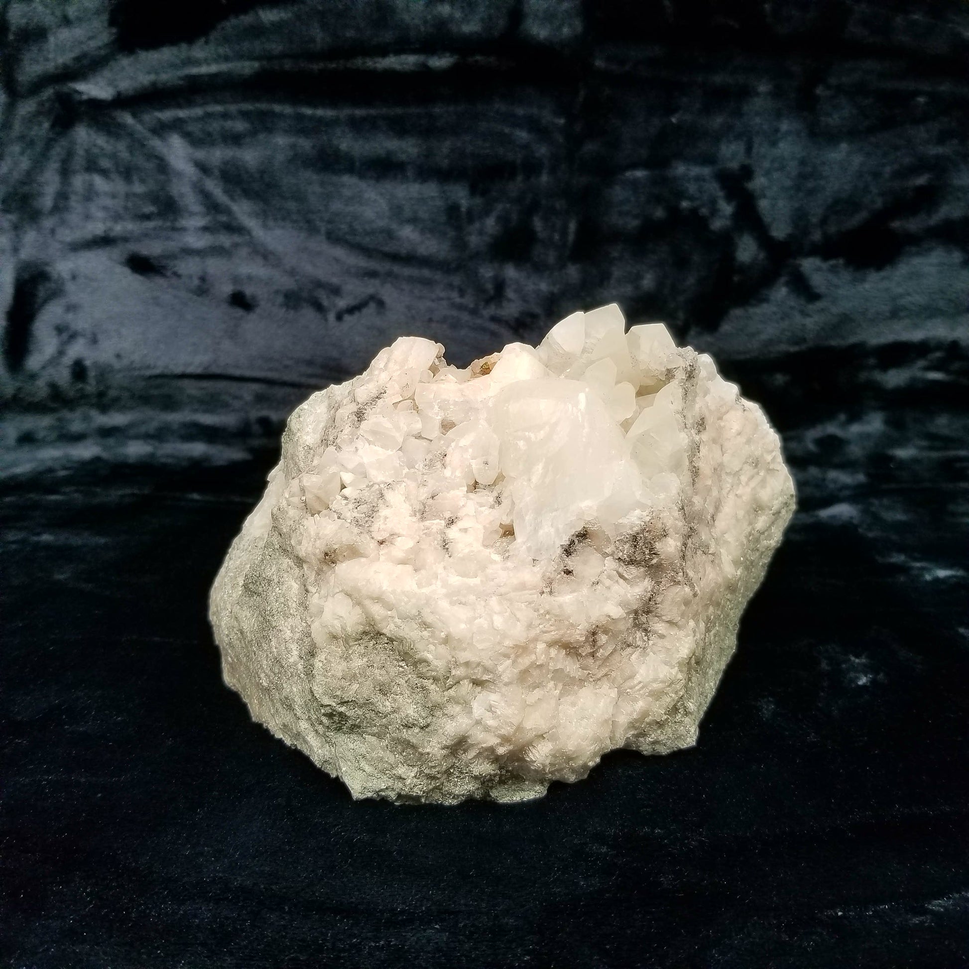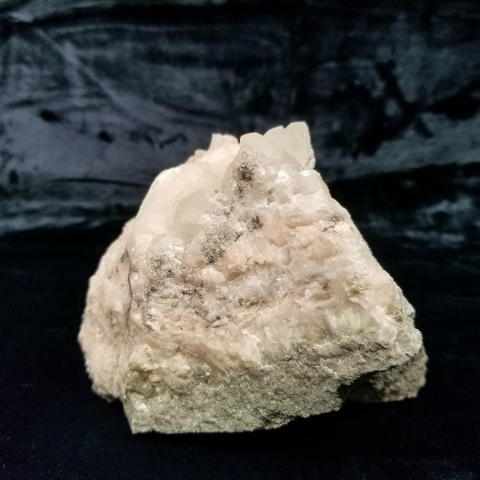 #11085 White Combined form Calcite with small Spirit Quartz on matrix