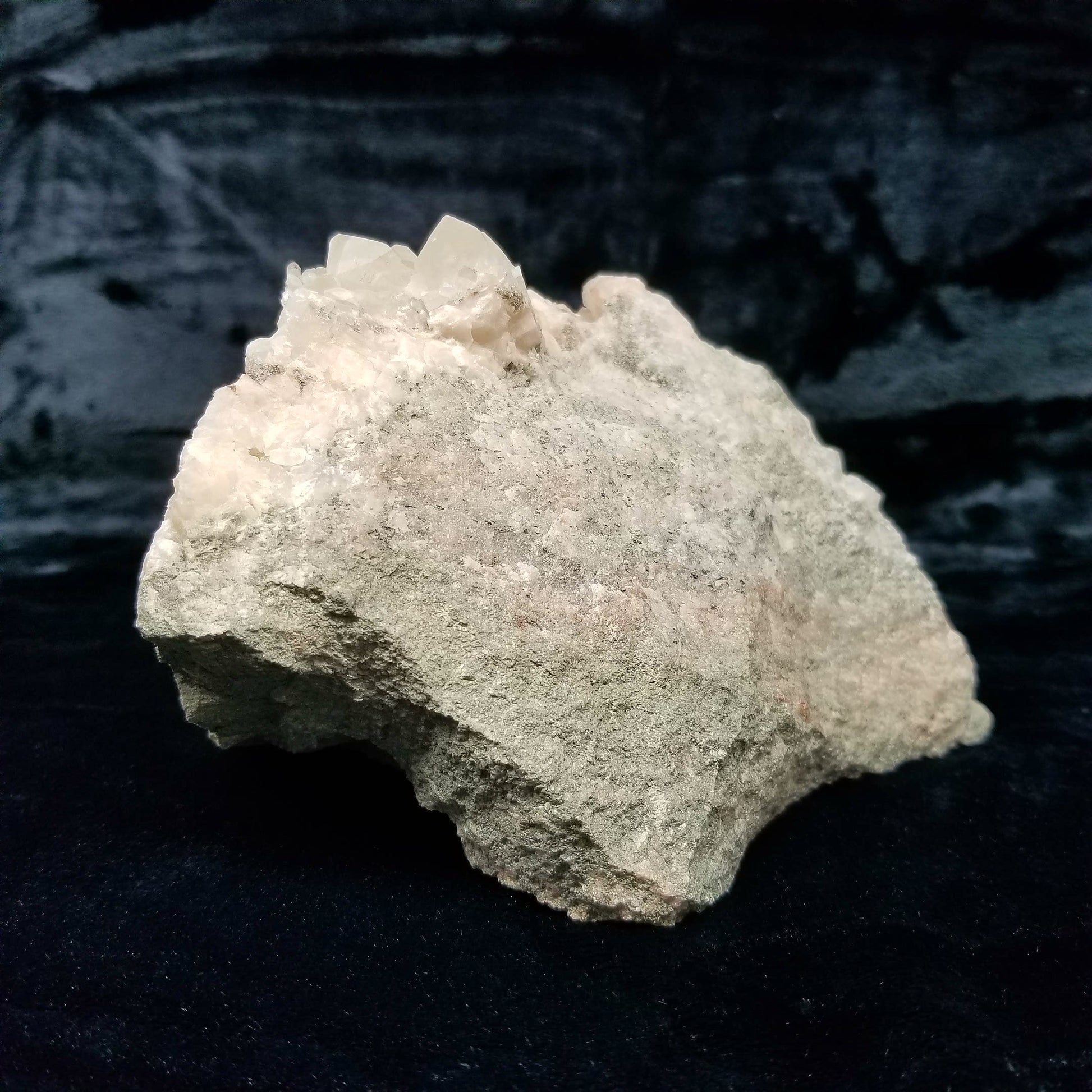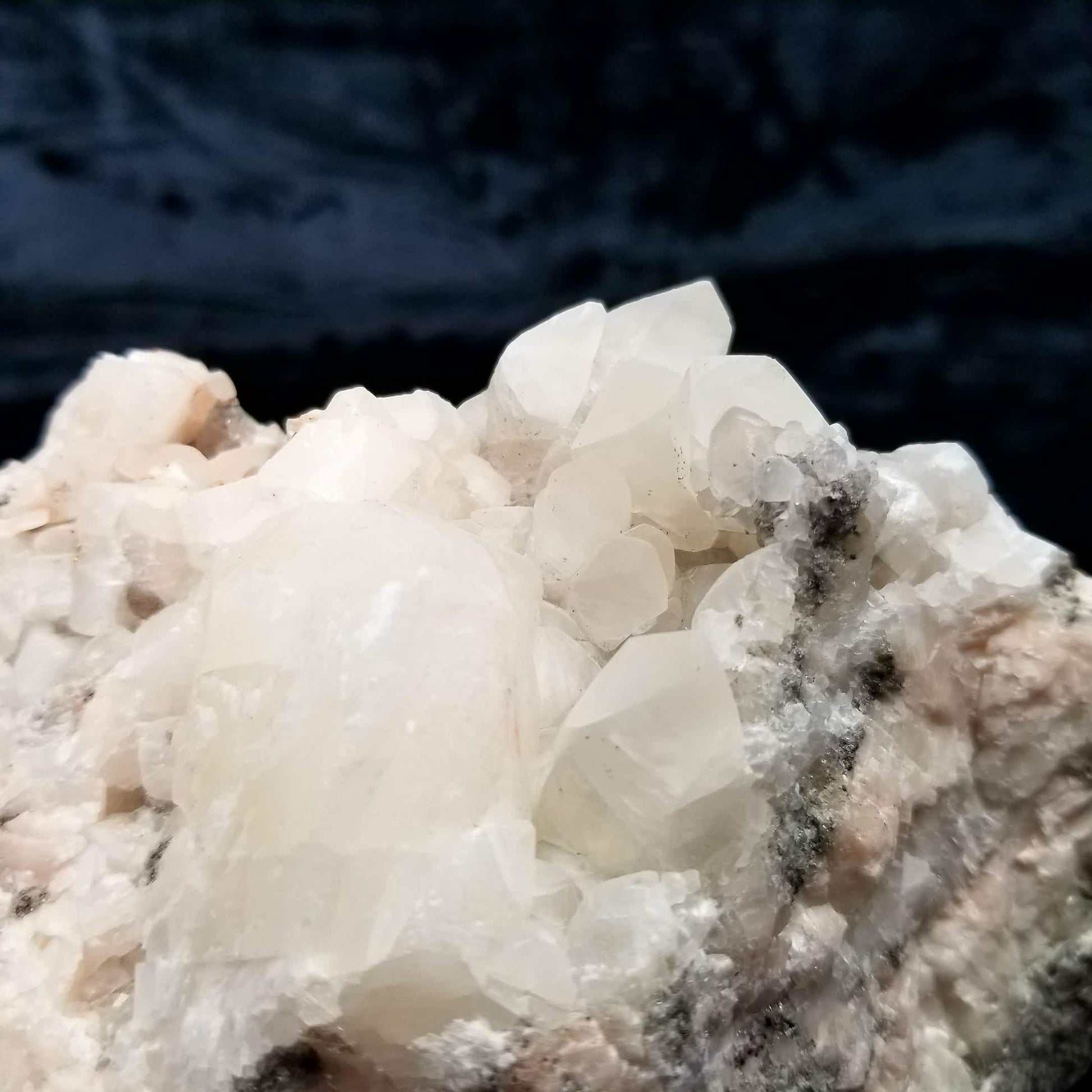 Enter the realm of glamour with this stunning specimen: Admire the glamorous beauty of white Combined form Calcite adorned with a small Spirit Quartz formation, set amidst white and pink Calcite and Sedimentary matrix. Enhanced by the gentle glow of 365nm light, this specimen exudes an enchanting allure, inviting you to indulge in its captivating radiance.