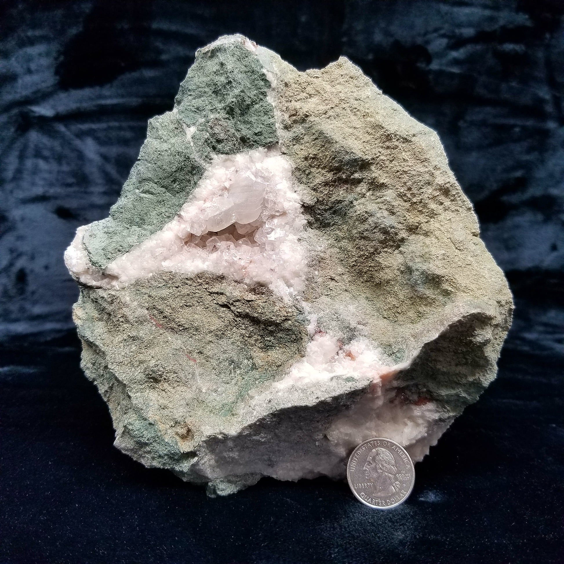 Indulge in the appeal of this captivating specimen: Marvel at the clear Combined form Calcite adorned with Hematite inclusions, set upon a Sedimentary matrix. Enhanced by the gentle glow of 365nm light, this specimen exudes an enchanting allure, inviting you to appreciate its captivating radiance.