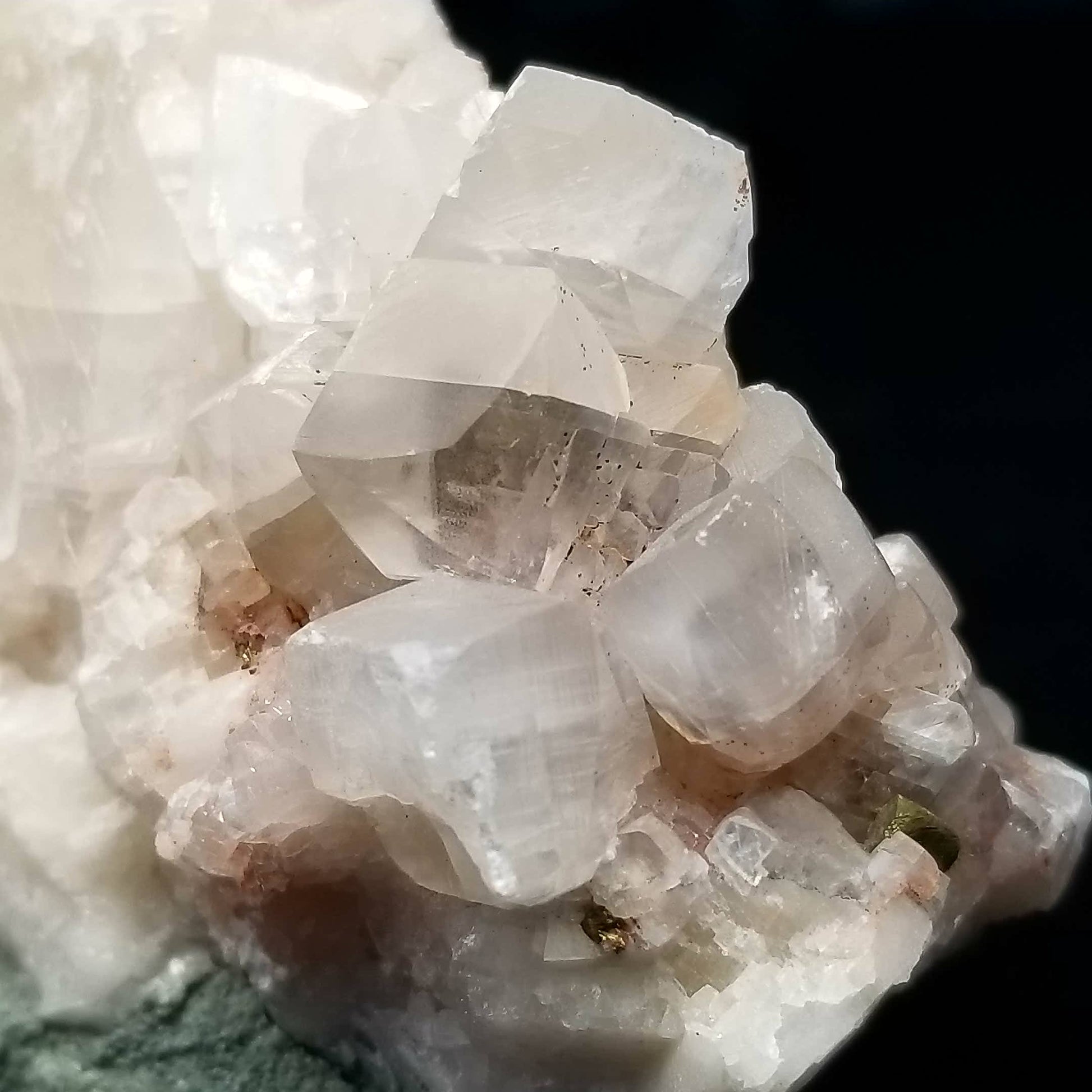 #11169 Chalcopyrite on clear Combined form Calcite with Hematite phantom inclusions