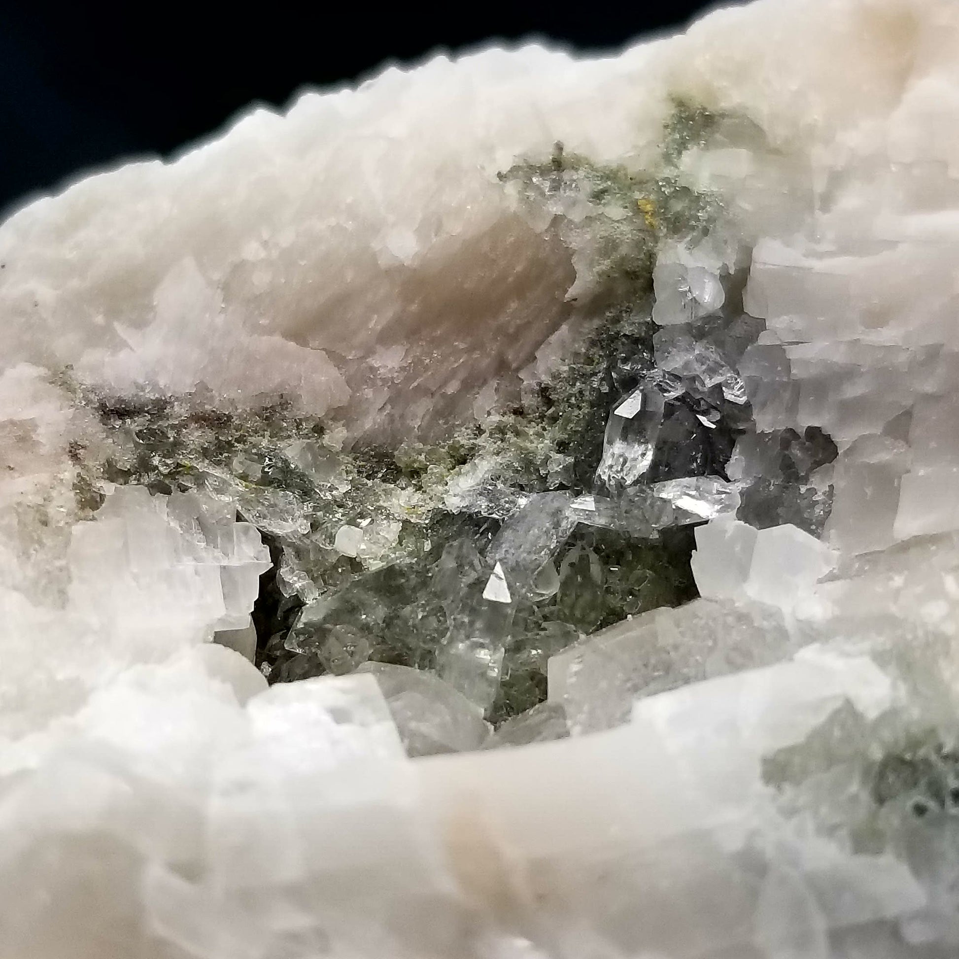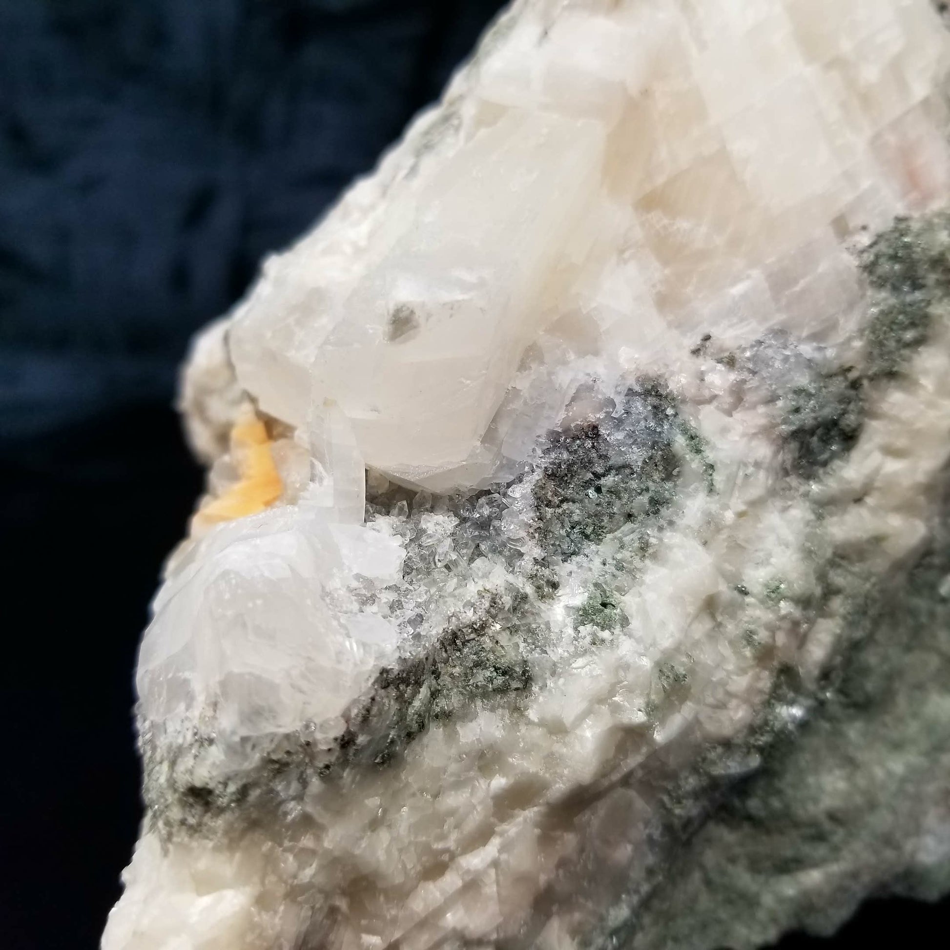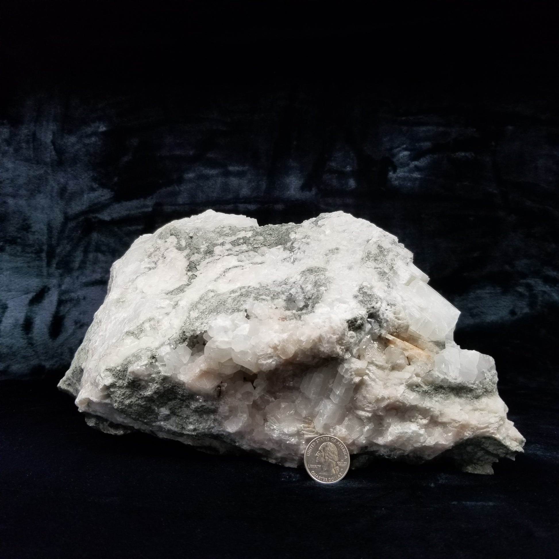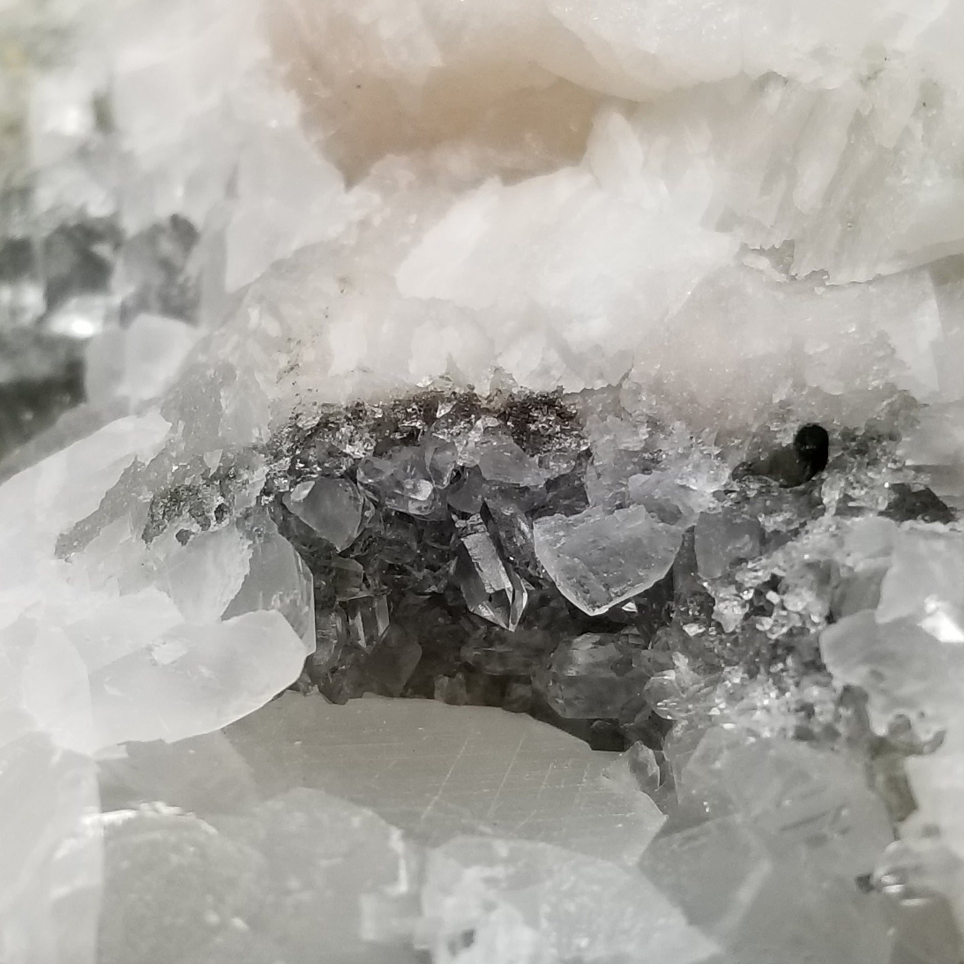 Delight in the charm of clear Combined form Calcite adorned with small Spirit Quartz formations, set upon a Sedimentary matrix. Enhanced by the gentle glow of 365nm light, this specimen exudes an enchanting allure, inviting you to appreciate its captivating radiance.