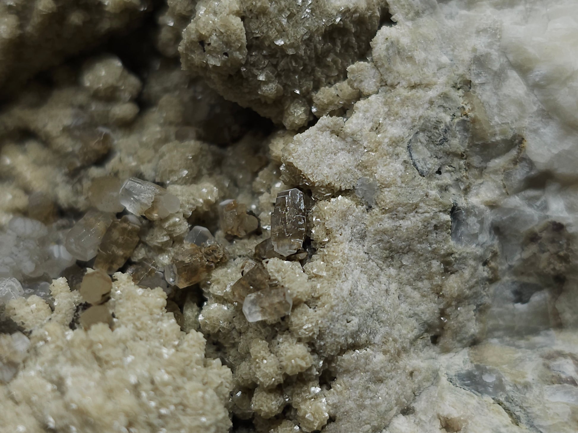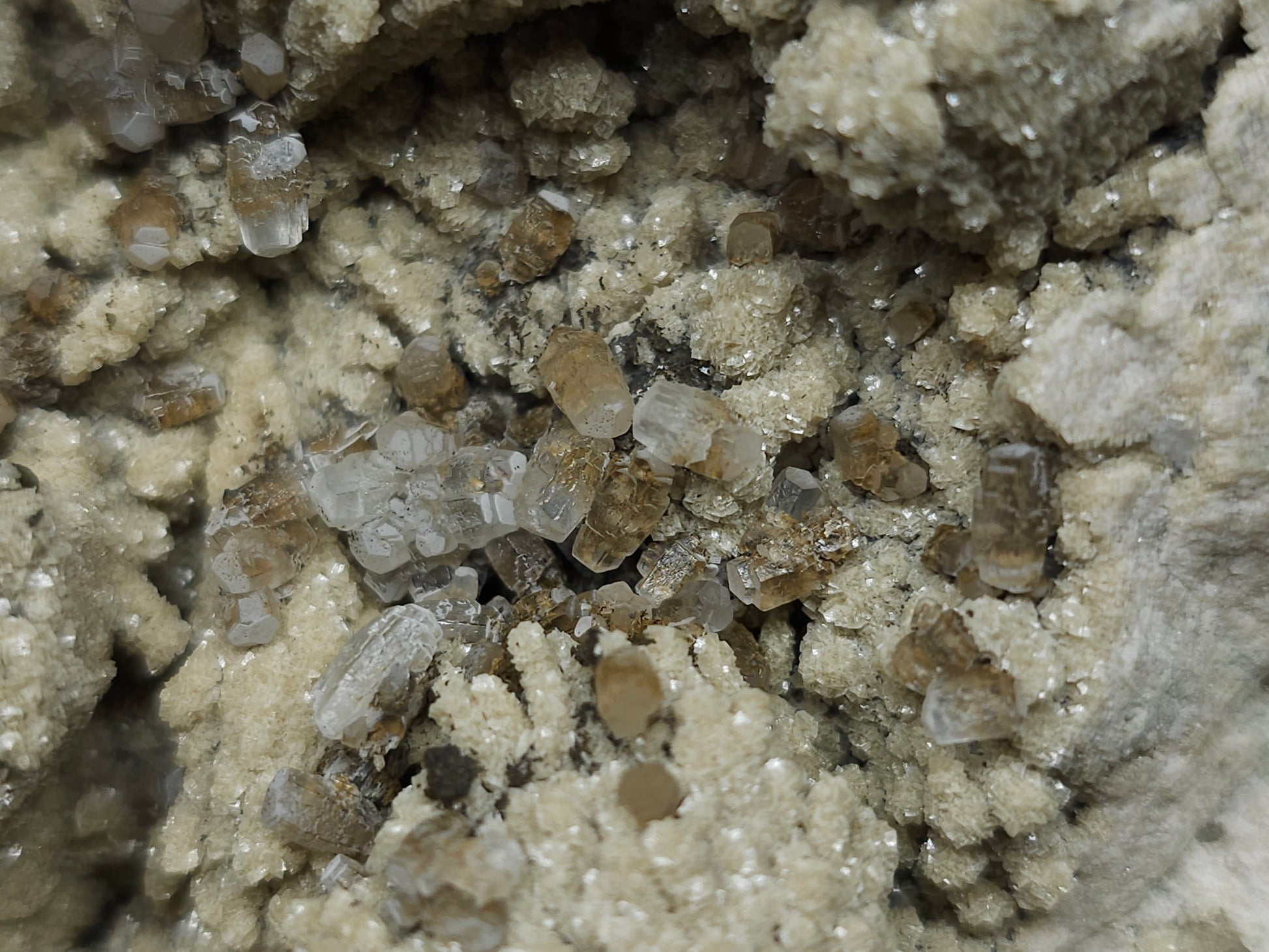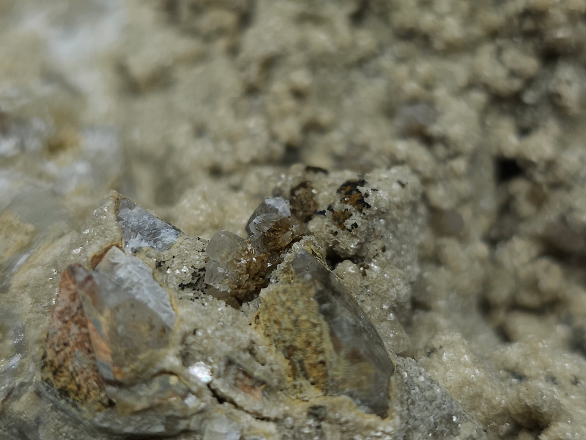 #88173 Combined form Calcite with iron inclusions on cream-white Calcite pseudomorph after Combined form and needle Calcite on amazing matrix