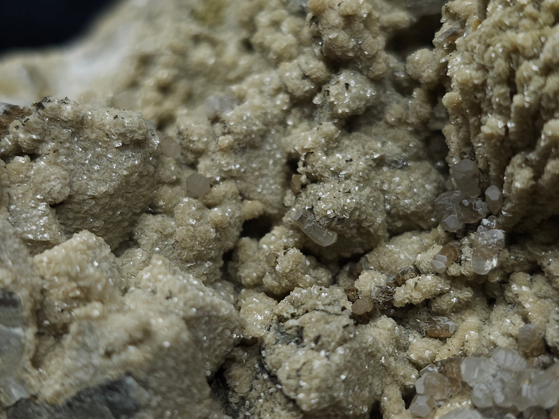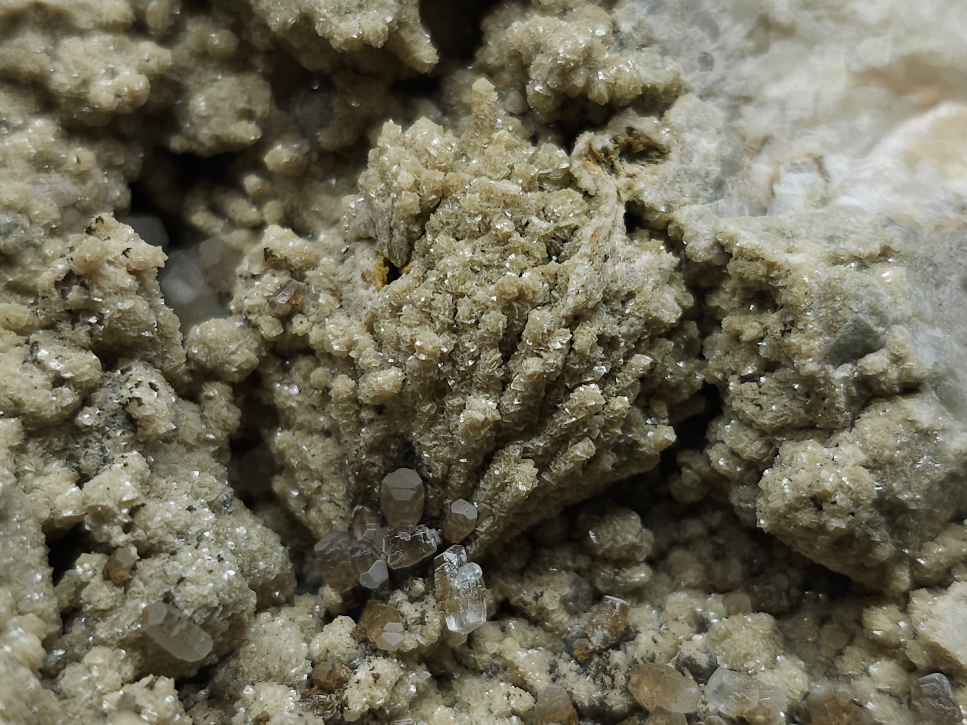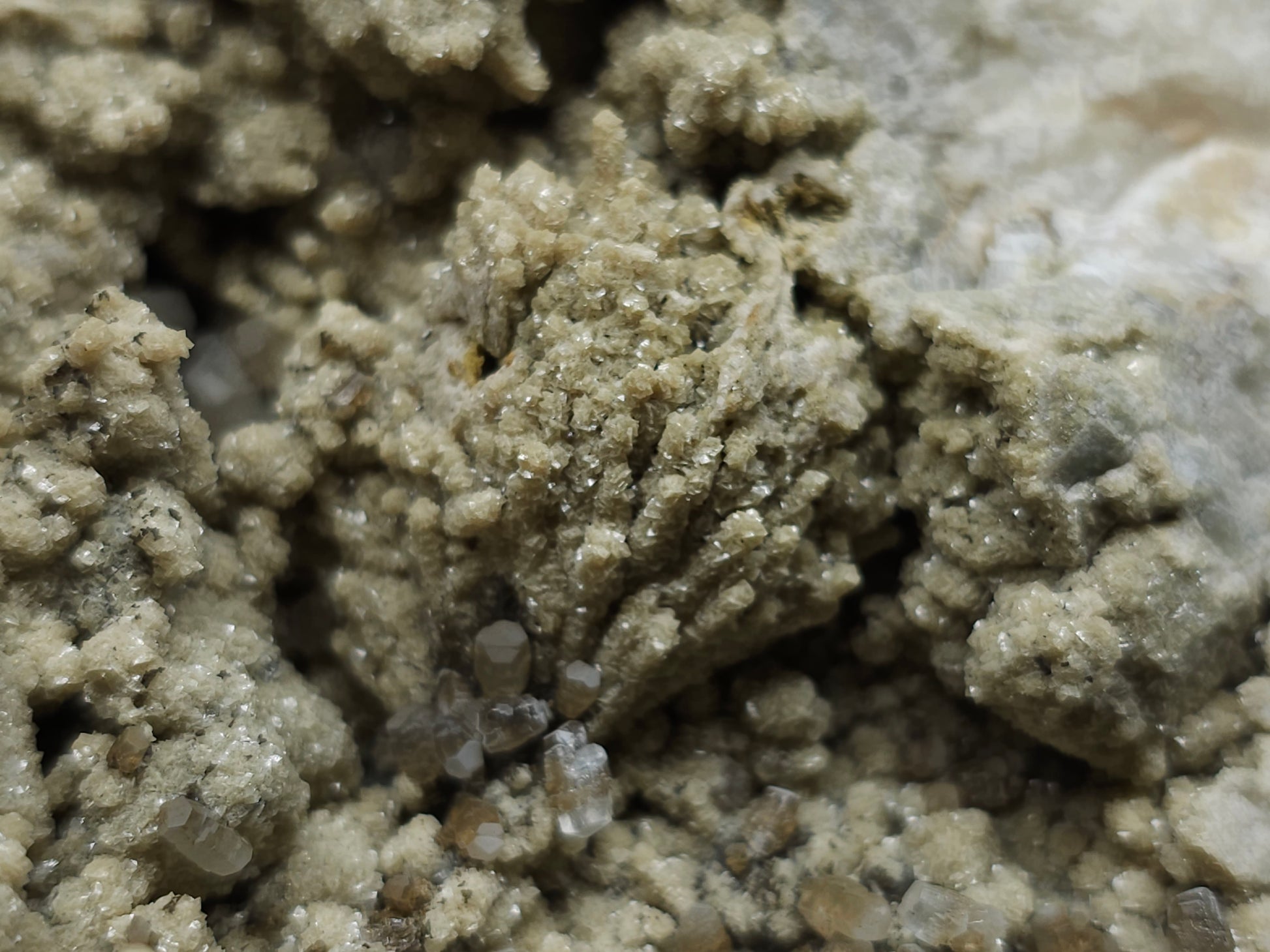#88173 Combined form Calcite with iron inclusions on cream-white Calcite pseudomorph after Combined form and needle Calcite on amazing matrix