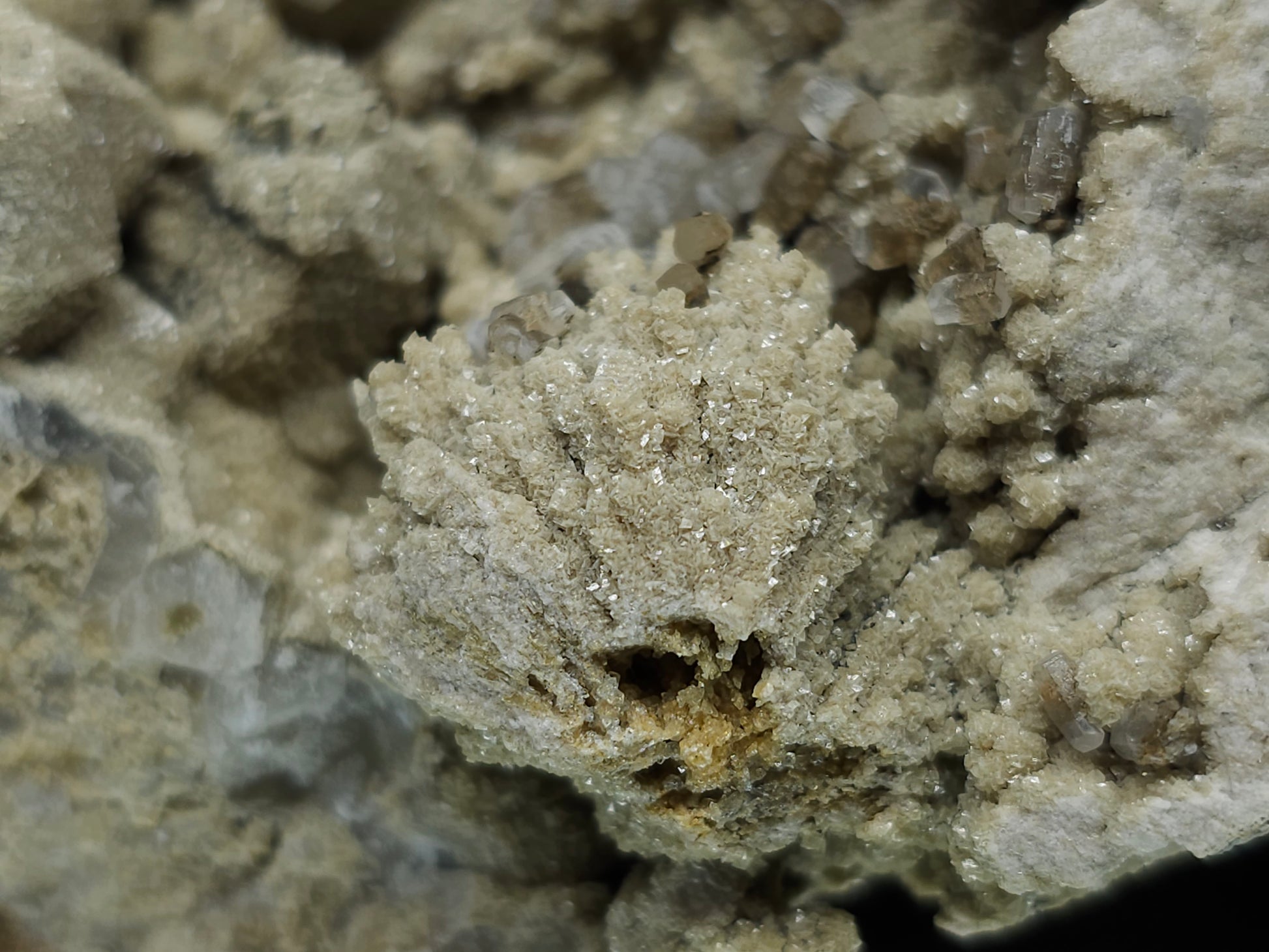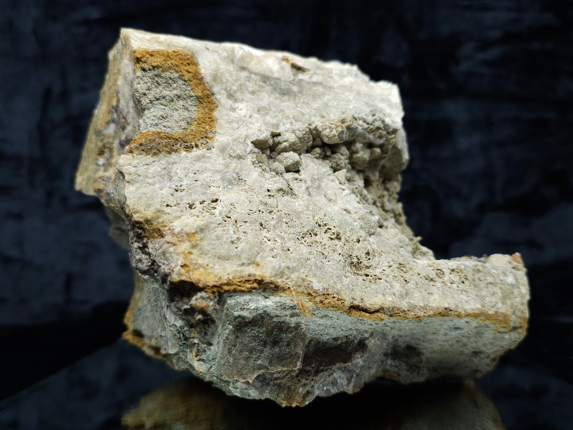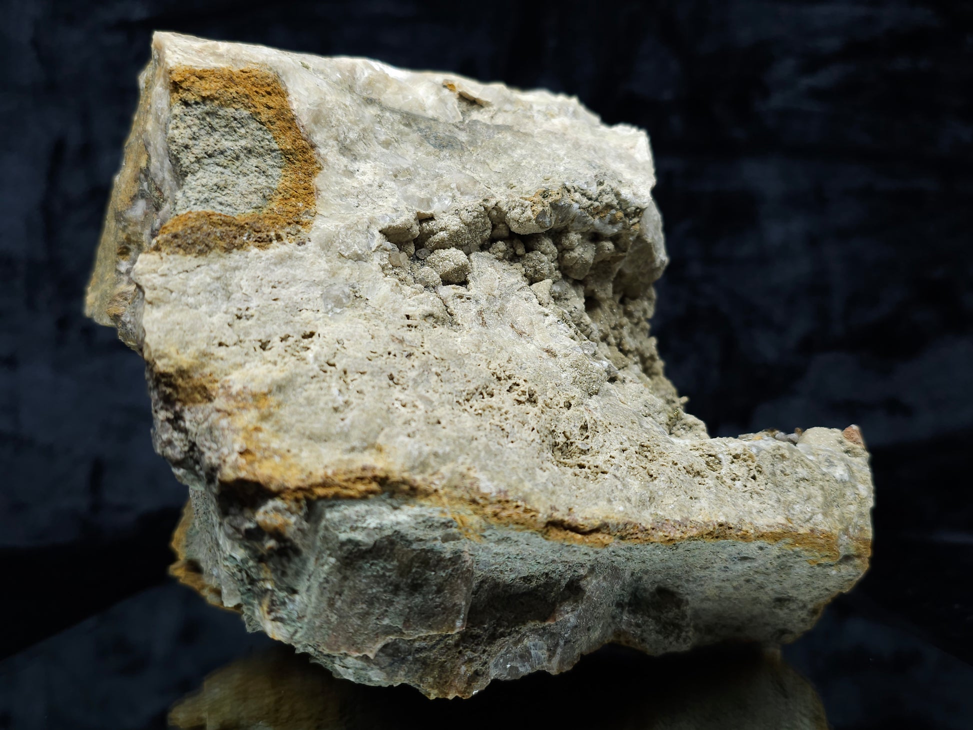 Get ready to behold a one-of-a-kind marvel that defies ordinary description! Witness the captivating allure of Combined form Calcite adorned with mesmerizing iron inclusions, resting gracefully upon cream-white Calcite. Its surface, intricately striated with a complex rhombohedral-scalenohedral pseudomorph, tells a tale of unparalleled beauty. Set against an astonishing matrix, this extraordinary specimen radiates an enchanting glow under 365nm light, casting a spell of wonder that is simply irresistible.