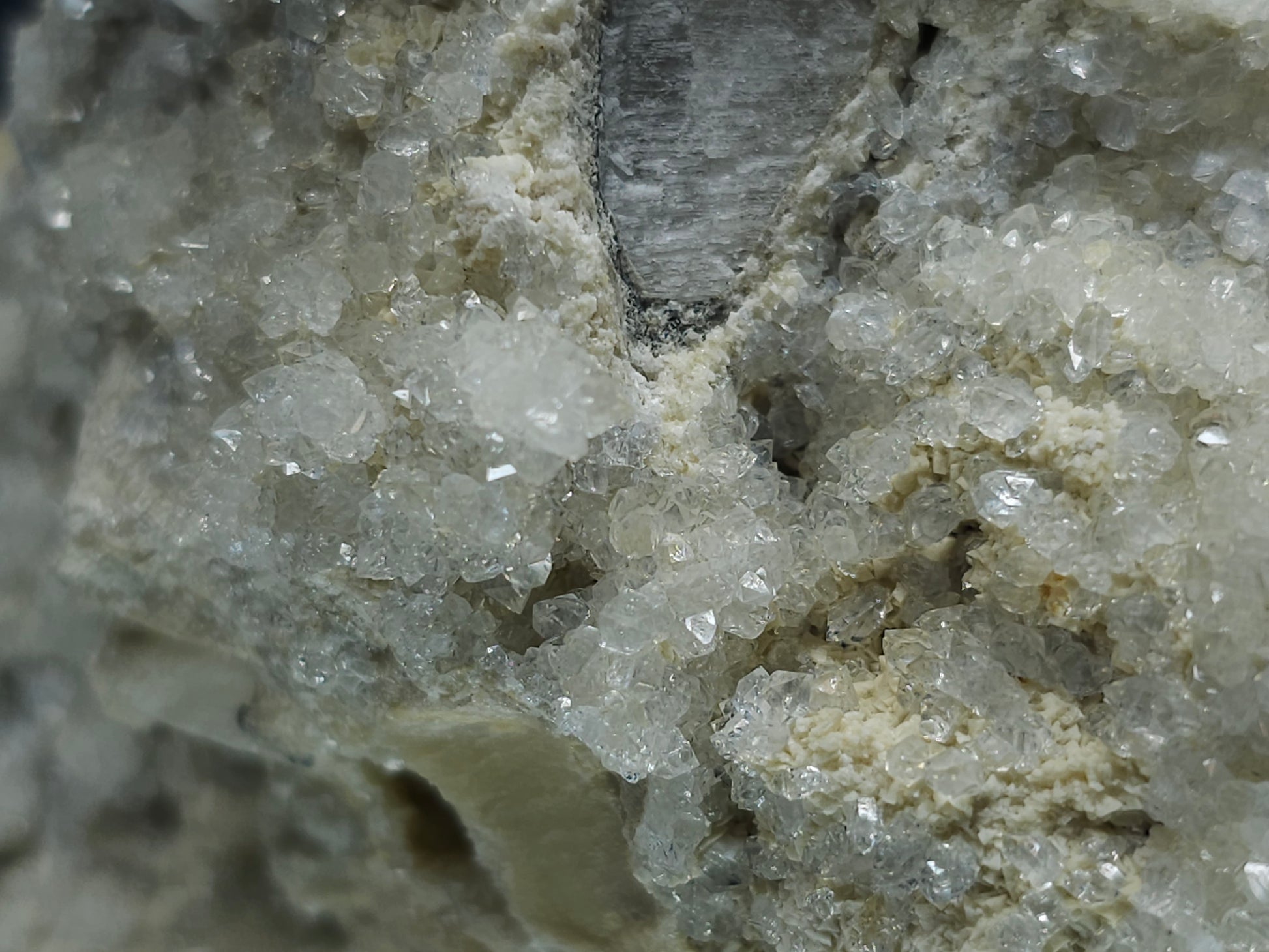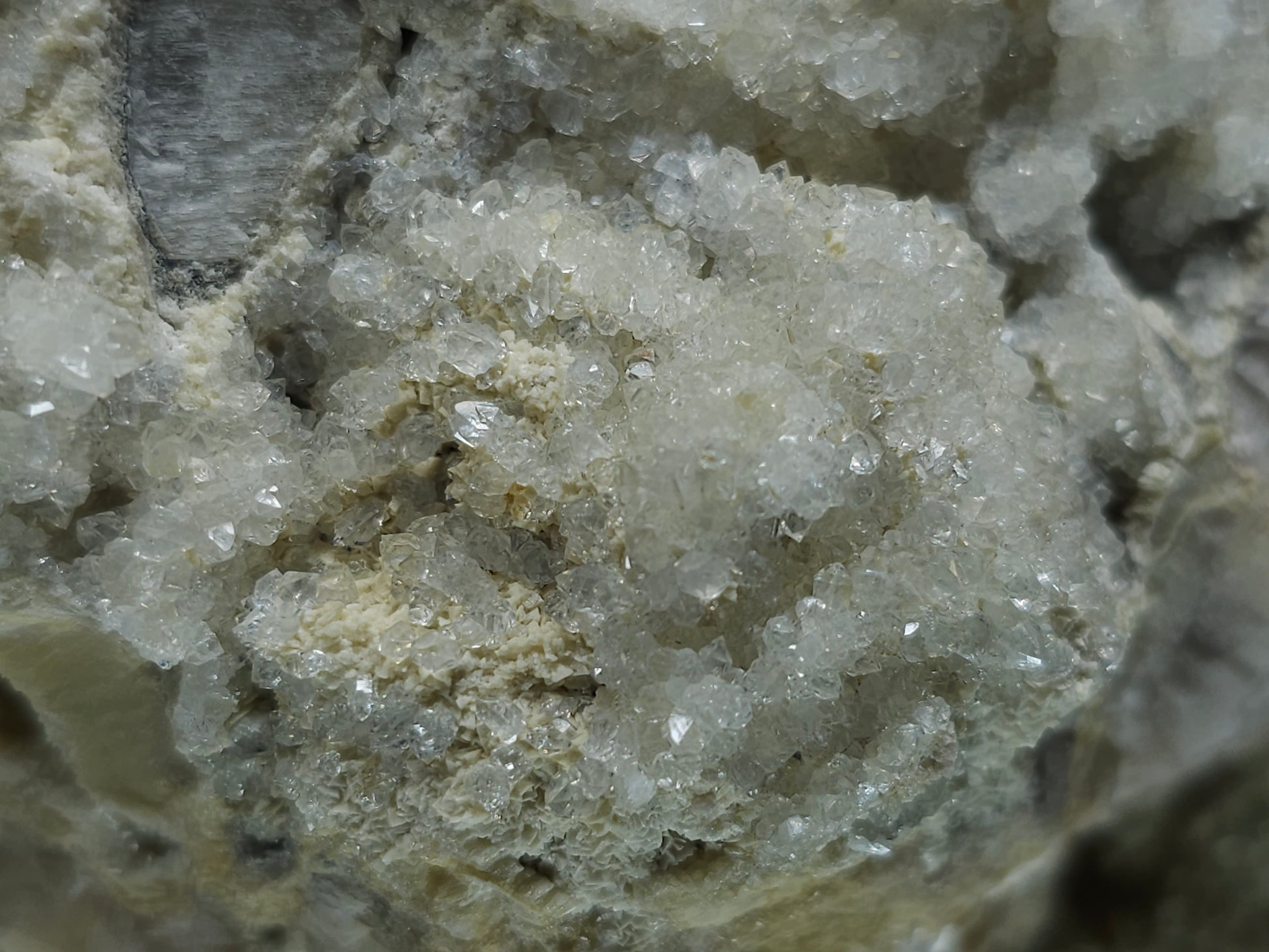 Behold the mystical spectacle of an Astonishing Spirit Gwindel Quartz formation, delicately perched upon cream-white Calcite. Its ethereal presence dances upon the heavily striated surface, adorned with a mesmerizing array of complex rhombohedral-scalenohedral pseudomorphs, as if woven by ancient enchantments. Emerging from the depths of a Calcite matrix, this wondrous creation emanates an otherworldly glow under the gentle caress of 365nm light, inviting you to delve into its magical embrace and unlock the secrets of the cosmos.